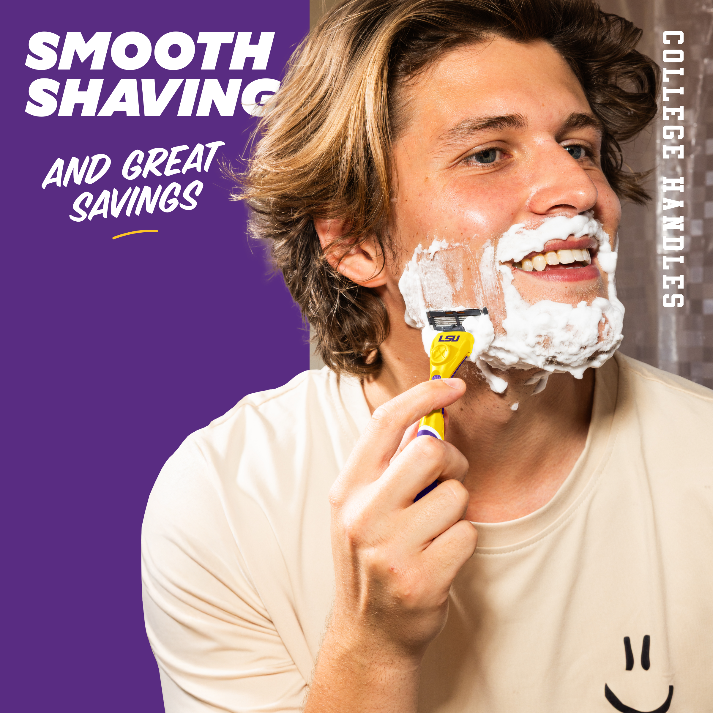 Your team. Your colors. Our limited-edition collegiate handles are built to rep school spirit from the sink to the stadium. Whether you go with our 4 Blade Club Series or 6 Blade Club Series cartridge, both are compatible with this weighty, diamond-patterned grip handle designed for ultimate comfort and control.