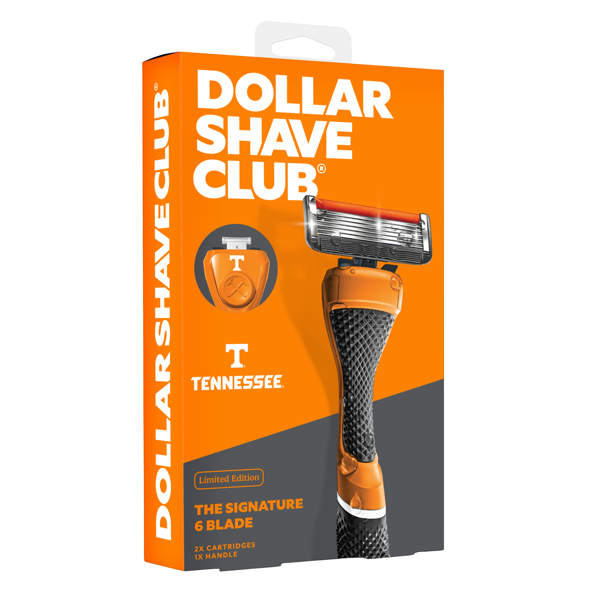 Your team. Your colors. Your face just got smoother with the Limited Edition Gift Set that includes our sturdy Diamond Grip handle repping school colors, two Signature 6 Blade cartridges with a precision trimmer for tricky spots, and a JUICY lube strip infused with Aloe + Vitamin E.