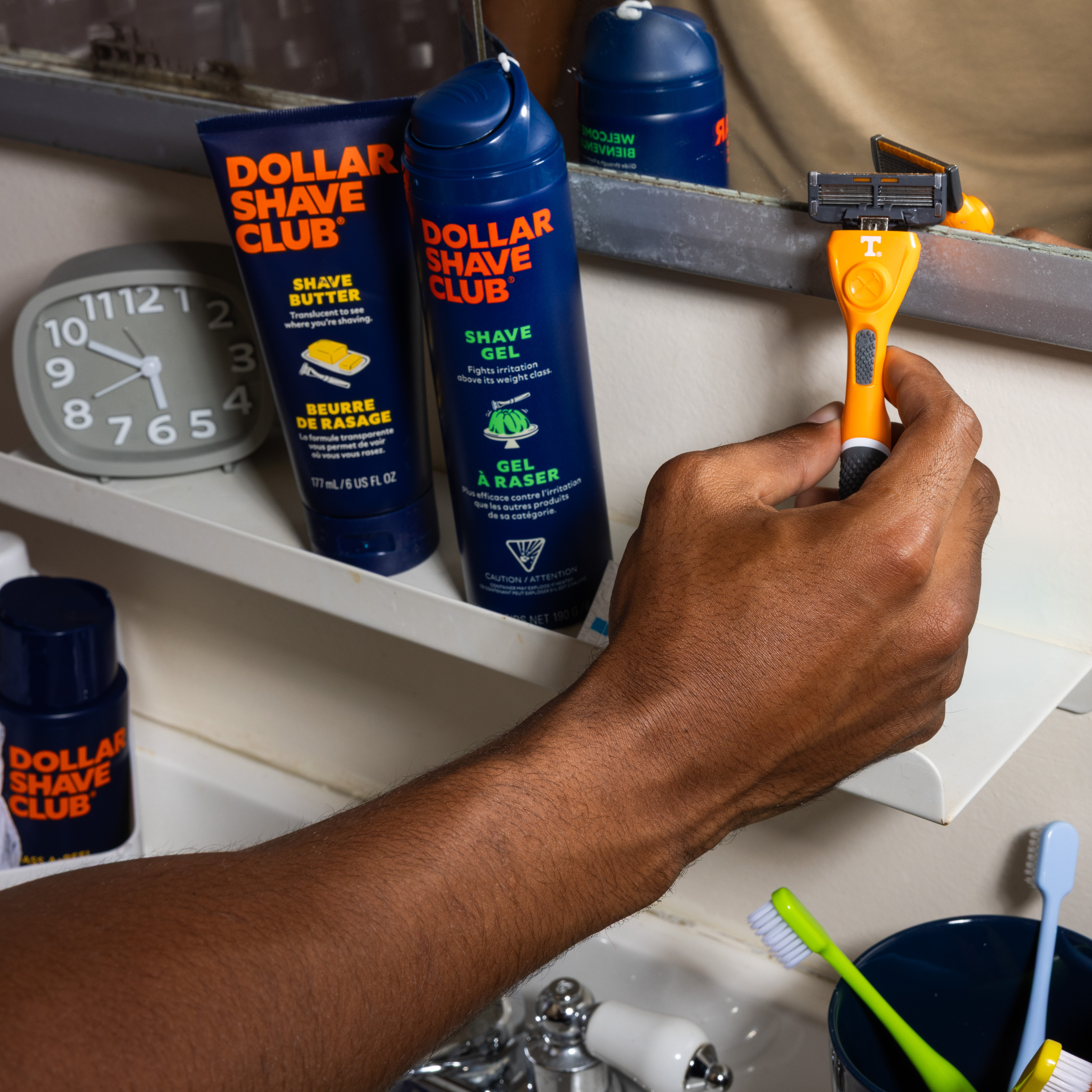 Grab your team’s Club Series Diamond Grip Handle and let the 6 Blade Razor do the work. Use short, gentle strokes in the direction of hair growth. Need to clean up under the nose or around sideburns? Flip it over and use the built-in precision trimmer for the finishing touches.