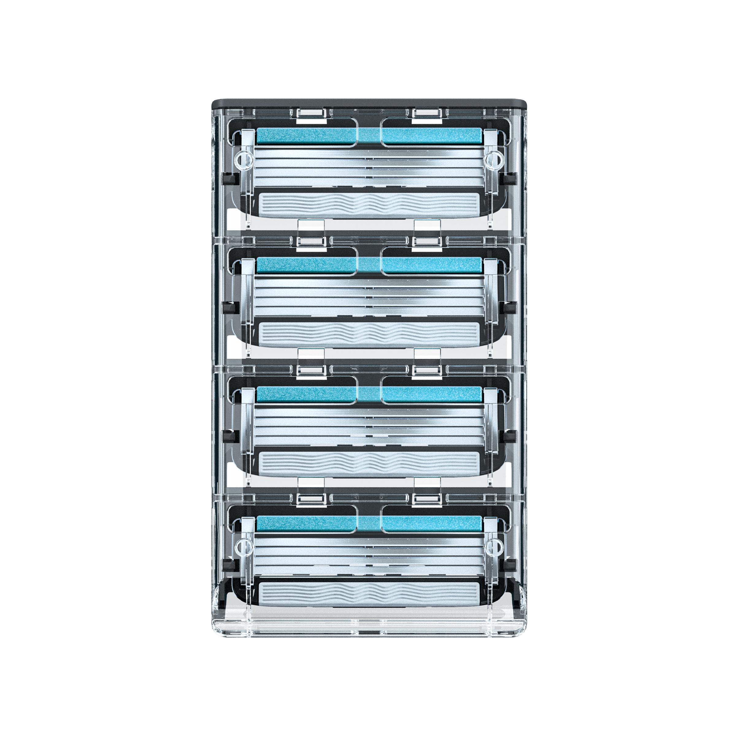 - Four precision cut, stainless steel blades designed for easy-rinsing