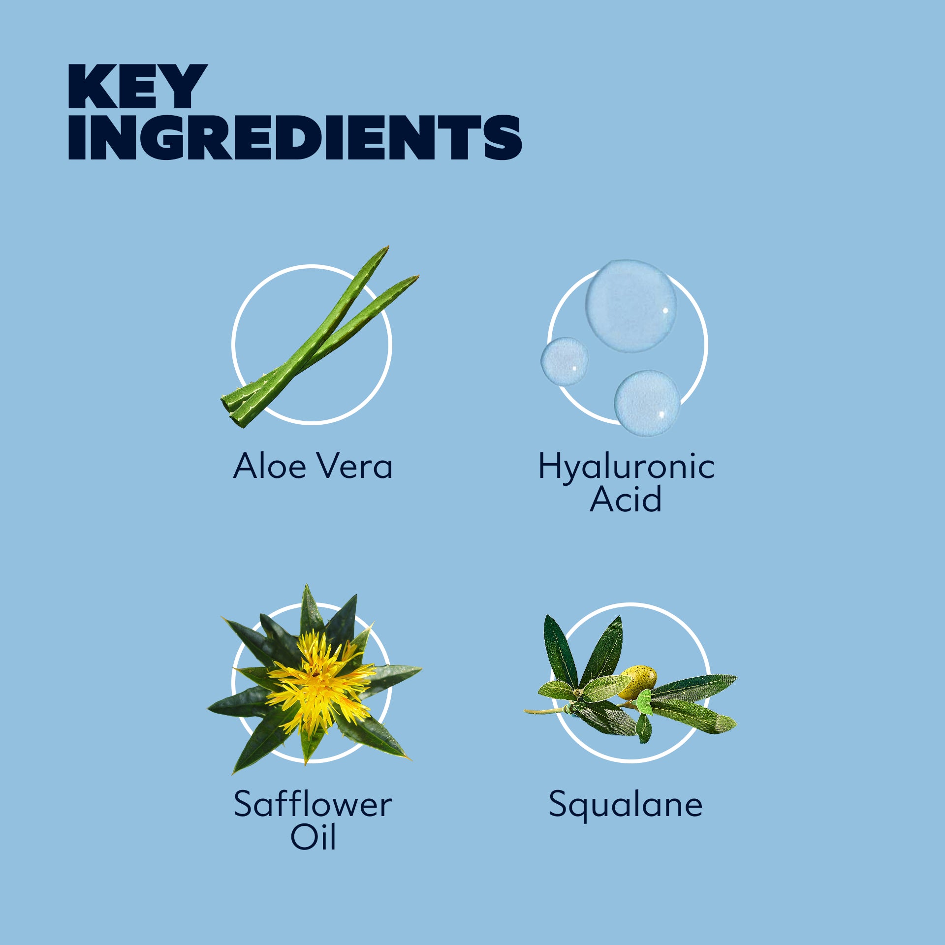 - A hydrating blend of Safflower Oil, Squalane and Sodium Hyaluronate