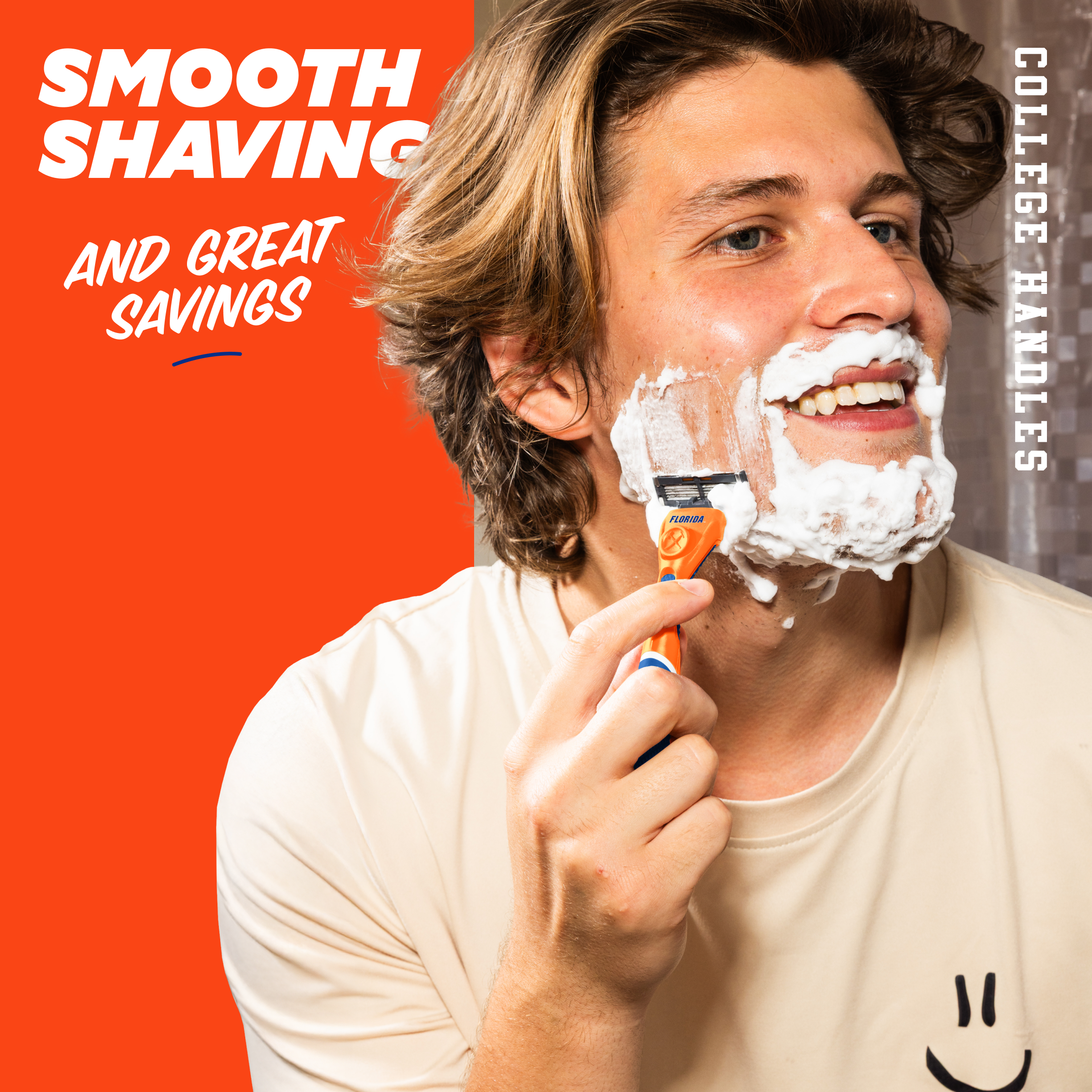 Grab your team’s Club Series Diamond Grip Handle and let the 6 Blade Razor do the work. Use short, gentle strokes in the direction of hair growth. Need to clean up under the nose or around sideburns? Flip it over and use the built-in precision trimmer for the finishing touches.